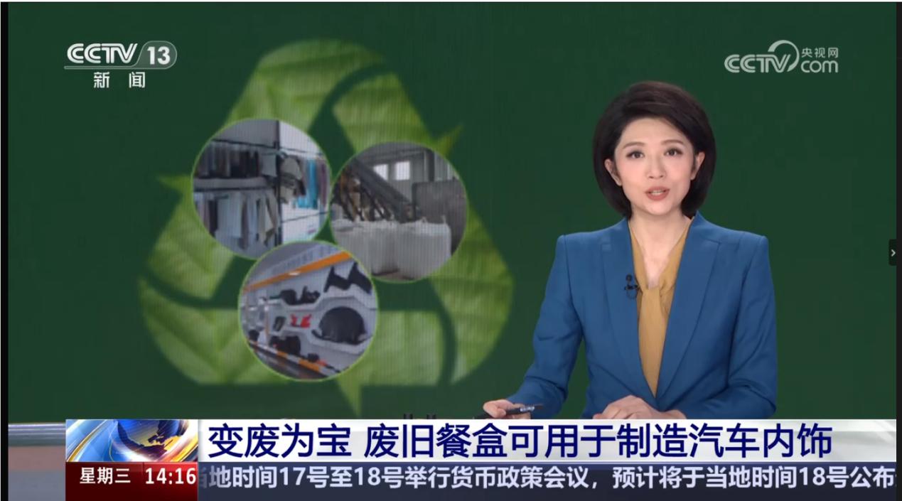 9月18日下午两点,CCTV13新闻频道播放了长达10分钟的再生塑料相关新闻,报道了我国在废旧塑料回收、废旧餐盒做成速干衣、废旧餐盒做成汽车配件方面的高值化利用。
